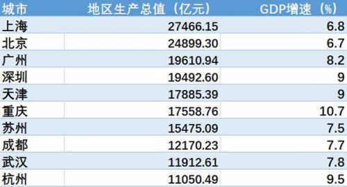 从全国城市GDP前十名榜单来看，包括5个副省级城市，4个直辖市以及普通地级市中经济总量最大的苏州。<br />