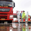 过路大车司机检查&ldquo;两扫三查一问&rdquo;后，为交警点赞。<br />