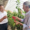 张延堂（左）在大棚里了解辣椒生长情况。（本文图片均由李万斌摄）<br />