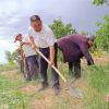 与乡亲们一起劳作。<br />