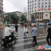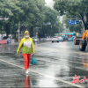 交警在雨中维持交通秩序。<br />