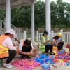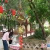 大南峪村村民在景区制作风车长廊景观。<br />
