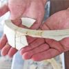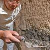 来自甘肃省文物考古研究所的考古队员在南佐遗址核心区大型宫殿建筑发掘现场展示炭化水稻遗存（8月23日摄）。&nbsp;新华社记者&nbsp;李贺&nbsp;摄影报道<br />