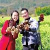 全国人大代表梁倩娟正在田间地头直播。张承荣　摄<br />