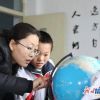 秦家庙小学老师指导学生认识地球仪。<br />