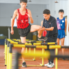 李宏强纠正队员的跨栏动作。<br />