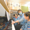 董晨用心教孩子们唱儿歌。<br />