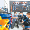 张天龙指导学生进行VEX机器人操作。<br />