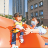董晨与孩子做游戏。<br />