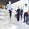 城投集团员工在新材料房屋设计展区参观。<br />