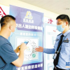 王金明向出境乘客介绍防疫要求。&nbsp;兰州出入境边防检查站供图<br />