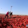 金秋九月，金塔县5万亩辣椒喜获丰收。走进金塔县西坝镇金马村，红艳艳的辣椒压弯了枝头，农户们正娴熟地采摘、装袋，干得热火朝天。<br />