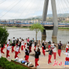 在临洮县城西洮河上的中天桥，花木兰带着舞蹈队队员在这边跳起了广场舞。<br />