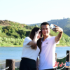 在临洮洮河国家湿地公园，一对情侣正在合影留念。<br />