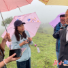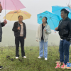 丁鹏举（左一）和同事们在绵绵秋雨中漫起&ldquo;花儿&rdquo;。<br />