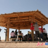 中外艺术家在阳关景区凉亭集体写生。<br />