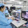 甘肃米笛声学有限公司车间员工正在生产扬声器。<br />