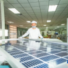 酒泉正泰新能源科技有限公司职工正在组装光伏发电板。<br />