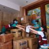 杨丽（右一）与队员搬运物资。<br />