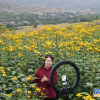 在故乡的花田里，郭宝热情介绍着自己的家乡。<br />