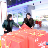郭宝在电商基地大厅里打包家乡特产通渭苹果。<br />
