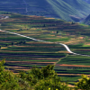 公路与路旁的农田相互映衬，构成了一幅美丽的田园画卷<br />