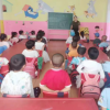 康家滩村幼儿园活动广场上，孩子们在老师的带领下做操锻炼，朝气蓬勃。<br />