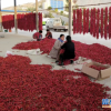 初秋，乘着和煦的阳光，天水市甘谷县新兴镇康家滩村辣椒晾晒场上，红彤彤一片，煞是喜人。工人们忙着筛选、晾晒，空气中弥漫着辣椒的香辣味。<br />