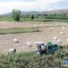 广河县城关镇十里墩村民收割打包青贮玉米。<br />
