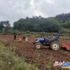 塄坎村机械穿梭深耕田地。<br />