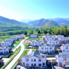 秋日映照下的祁连村生态及地质灾害避险搬迁安置点，白墙青瓦，花草芬芳，人头攒动，洋溢着乔迁新居的喜悦。<br />