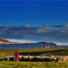 远方，雄伟的马牙雪山直插云霄。<br />