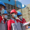 中铁二十局兰州市妇幼保健院异地新建项目现场管理人员收看开幕会直播盛况。（许岗摄）<br />