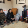 甘肃祁连山国家级自然保护区管护中心大黄山自然保护站高坡资源管护站管护员集中收看党的二十大开幕会盛况<br />