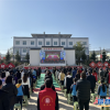 说话间，广场已经聚集了150余名干部群众。10时，嘹亮的国歌声奏响，党的二十大隆重开幕！<br />