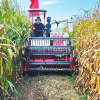 凉州区武南镇的大豆玉米带状复合种植田里，农机手收获大豆。省农业机械化技术推广总站供图<br />
