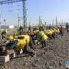 施工人员集中整治兰新线线路设备病害。<br />