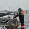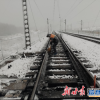 铁路工作人员正在进行清雪工作。<br />