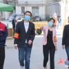 刘兰伊（右）查看疫情防控卡口点工作。<br />