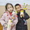 孩子们展示手工作品<br />