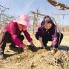 李翠芹和工人们正在对樱桃树进行整枝<br />