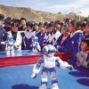 在科普展品体验区，各类趣味科普展品琳琅满目，涵盖声学、电学、力学等多个学科领域。记者看到，每一个体验项目前，都围满了充满好奇心的学生，大家认真聆听科普志愿者的讲解，积极提问交流，在轻松愉悦的氛围中学习科学知识、感受科技魅力。图为学生们观看机器人表演。<br />
