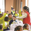 榆中县文远小学活动现场孩子们纷纷举手抢答 赵万山 摄<br />