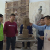 杜永卫（右）教授彩塑技艺<br />
