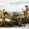 5200年前青藏高原东北部马家窑文化先民狩猎印度野牛和苏门答腊犀牛的场景复原图。<br />