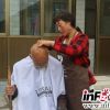 &ldquo;爱心理发员&rdquo;为村里60岁以上老年人免费理发。<br />