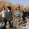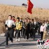 师生队伍穿行在张掖黑河湿地当中。<br />
