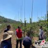 农技专家在果园手把手给村民讲授苹果管理技术。<br />