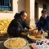 韩立员（右一）帮助史兰菊老人搓玉米<br />