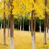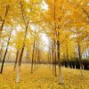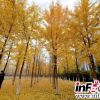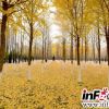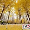 银杏林被金黄色浸染，美如画卷。<br />